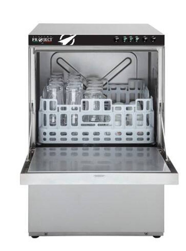 lave-vaisselle mono paroi électromécanique-doseur de produit de rinçage peristaltique temporisé-electrovanne pour eau chaude-filtre cuve (Jet500plus)-dispositif anti-pollution-thermostat fixe EQUIPEMENT: - 1 panier- 2 paniers (Jet500plus)- godet porte couverts OPTIONS& ACCESSOIRES- doseur de produit de lavage- pompe de vidange- triphasé