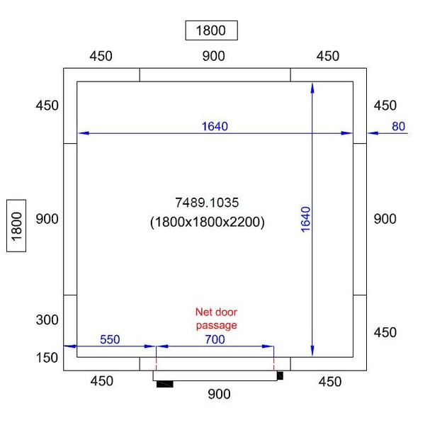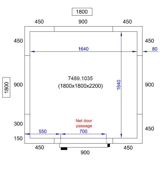 Chambre froide dimension 1800x1800x2010 , volume 5 m3, porte 700x1845, sol inox