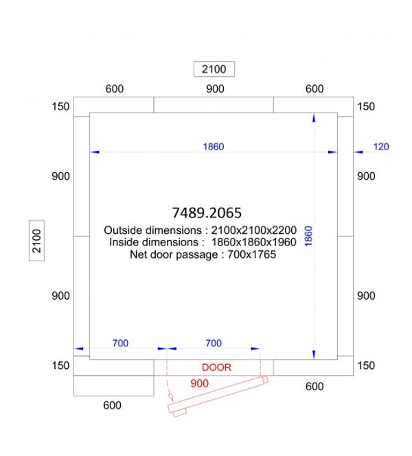 CHAMBRE FROIDE NEGATIVE , en panneaux de 120 mm d'épaisseur, porte de 700x1765 , 6,8 m3